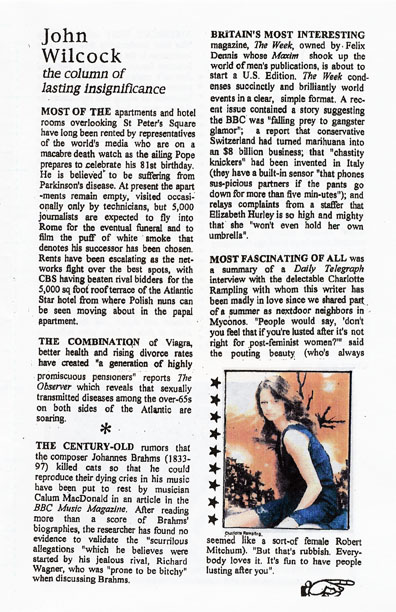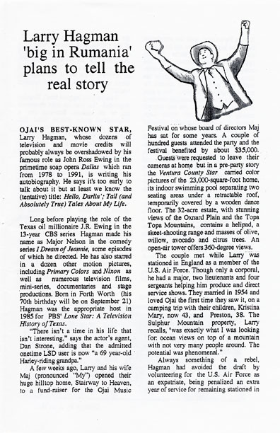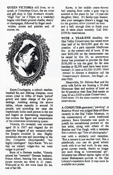 Inside: Larry Hagman, Hummingbirds, Las Vegas Venetian, Tycoon Sheldon Adelson, Moon calendar, Ojai’s Mel Bloom & Andi, Tottenham Court restaurant, JSG Boggs, forger extraordinaire, Backpacking strip, JW Column: Pope; Viagra; Brahms; This Week; Charlotte Rampling; the Christos; College students; Tuli; medical marihuana; dead celebs; voting machine; Coca-Cola; highway studs, Alice in Ojai? The Lewis Carroll story